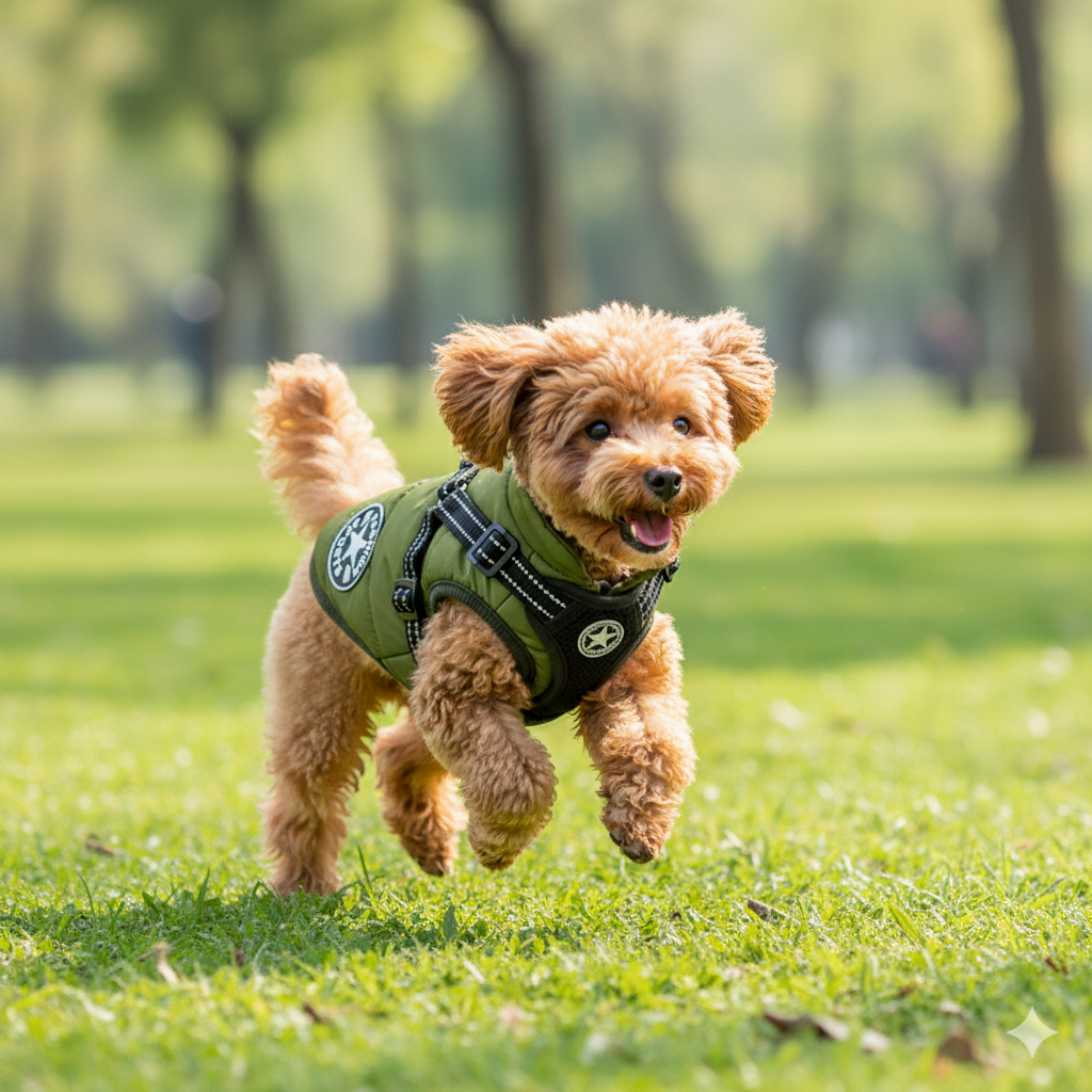 Il peut courir, sauter et jouer sans aucune gêne, tout en étant protégé du vent et de la pluie. Sa doublure douce préserve son poil et son confort.